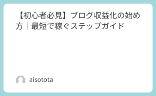 Blog 【初心者必見】ブログ収益化の始め方|最短で稼ぐステップガイド ブログで収益化を目指したいけれど、何から始めればいいのか迷っていませんか?そこで今回は、初心者でも迷わず進める収益化ステップをわかりやすく紹介します。この記事を読むことで、ブログの立ち上げから広告設置、収益化のポイントまで、順を追って理解で... 2025.10.16 BlogWord Pressブログ運営初心者向けガイド副業・稼ぐ