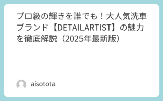 カーケア プロ級の輝きを誰でも!大人気洗車ブランド【DETAILARTIST】の魅力を徹底解説(2025年最新版) 洗車の世界に新しい風を吹き込んでいるブランド――それが【DETAILARTIST(ディテールアーティスト)】です。「洗車は難しい」「プロのような艶が出せない」と感じている人でも、DETAILARTISTの製品を使えば、自宅で簡単に“ショール... 2025.10.09 カーケアプロ仕様アイテム人気ブランド紹介洗車用品車メンテナンス